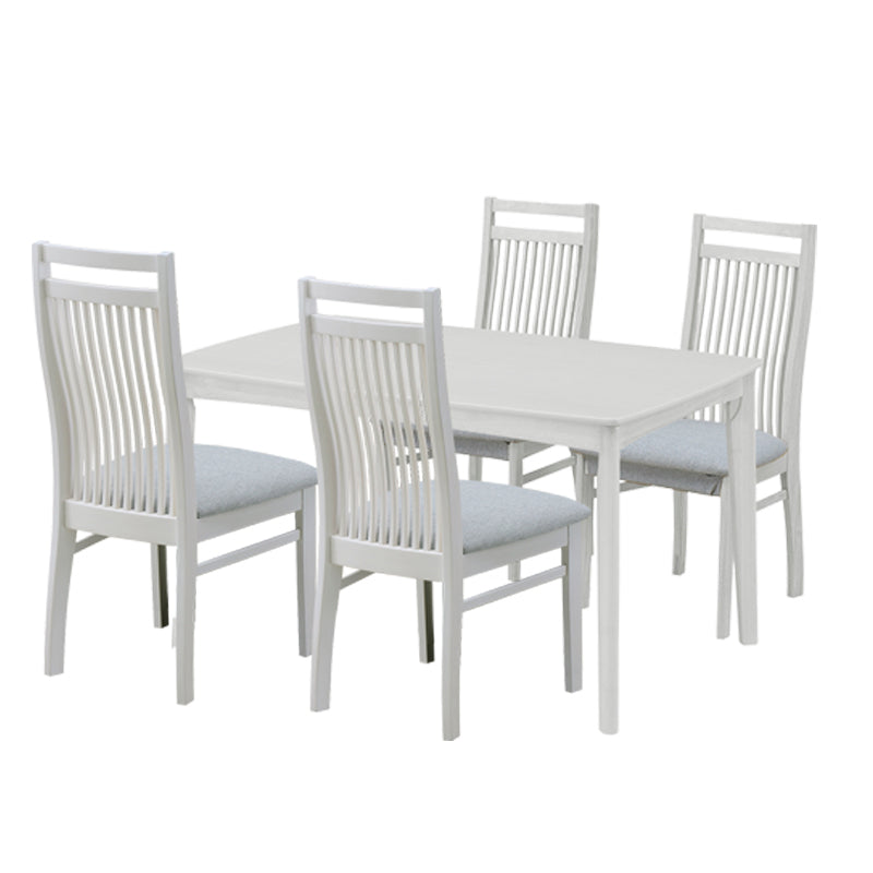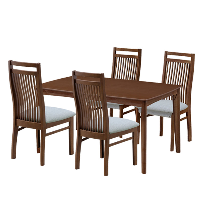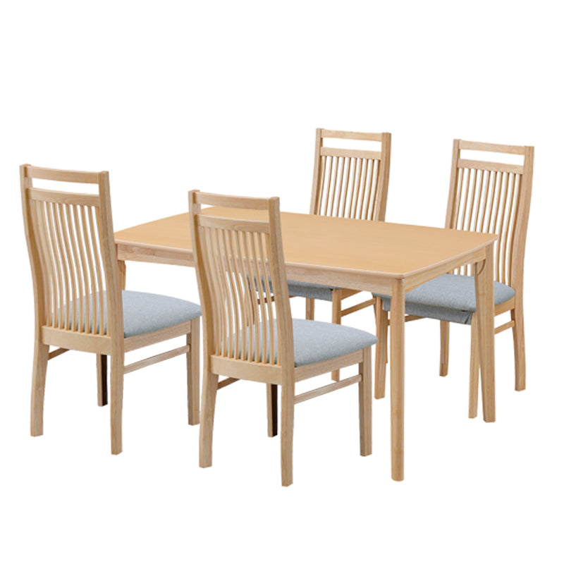 テーブル:オーク突板・ラバーウッド チェア張地:ファブリック チェア脚:ラバーウッド |