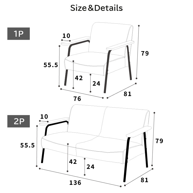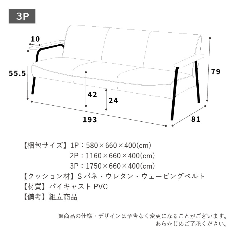 1人掛け:約76×81×79(cm) 2人掛け:約136×81×79(cm) 3人掛け:約193×81×79(cm) |