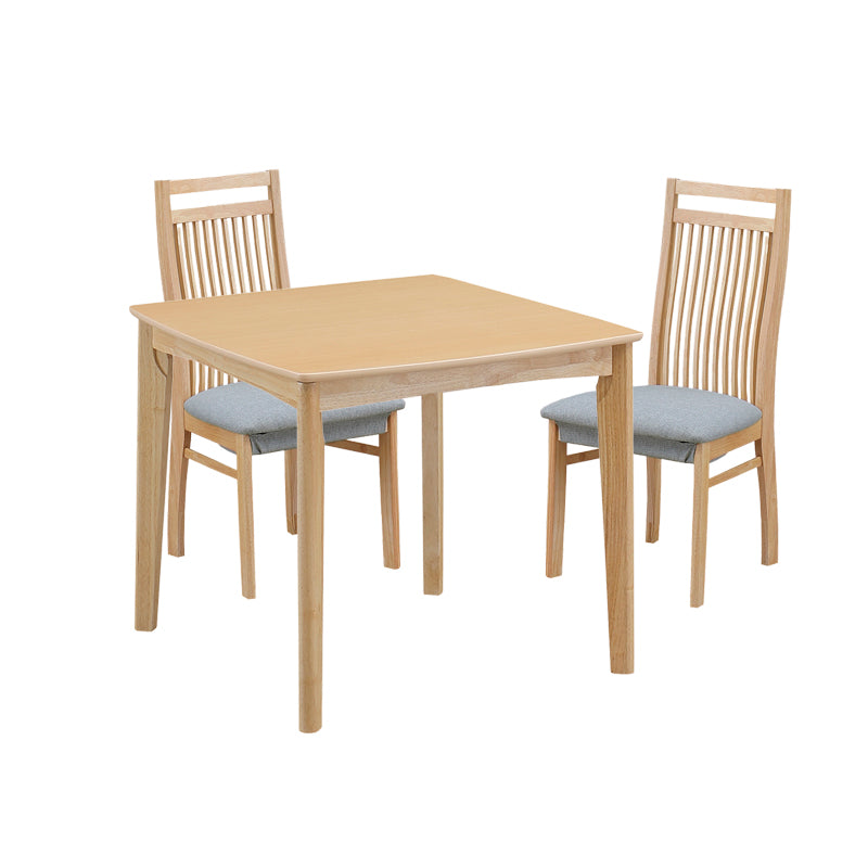 テーブル:オーク突板・ラバーウッド チェア張地:ファブリック、チェア脚:ラバーウッド |