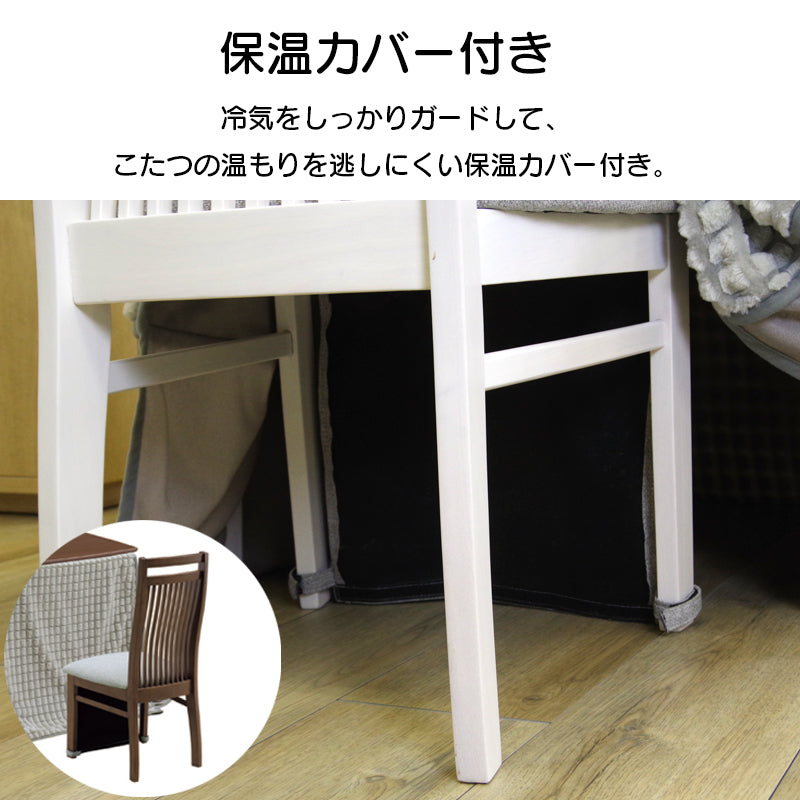 ・国内メーカーメトロ製ヒーター採用 ・ 凹凸のない、すべすべ天板 ・1台2役。季節で使い分けできるこたつテーブル ・チェアは完成品 ・保温カバー付きのチェア ・ お部屋に馴染む3色展開(ブラウン・ナチュラル・ホワイト) |