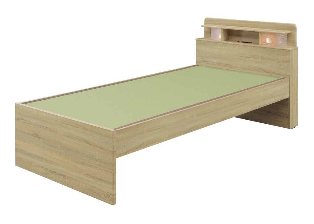 KaguBuy ロータス 和紙畳 ベッド ベッドフレーム ライト付 Wスライドコンセント付 国産 日本製 幅100 和風 和紙 畳ベッド【大型商品】