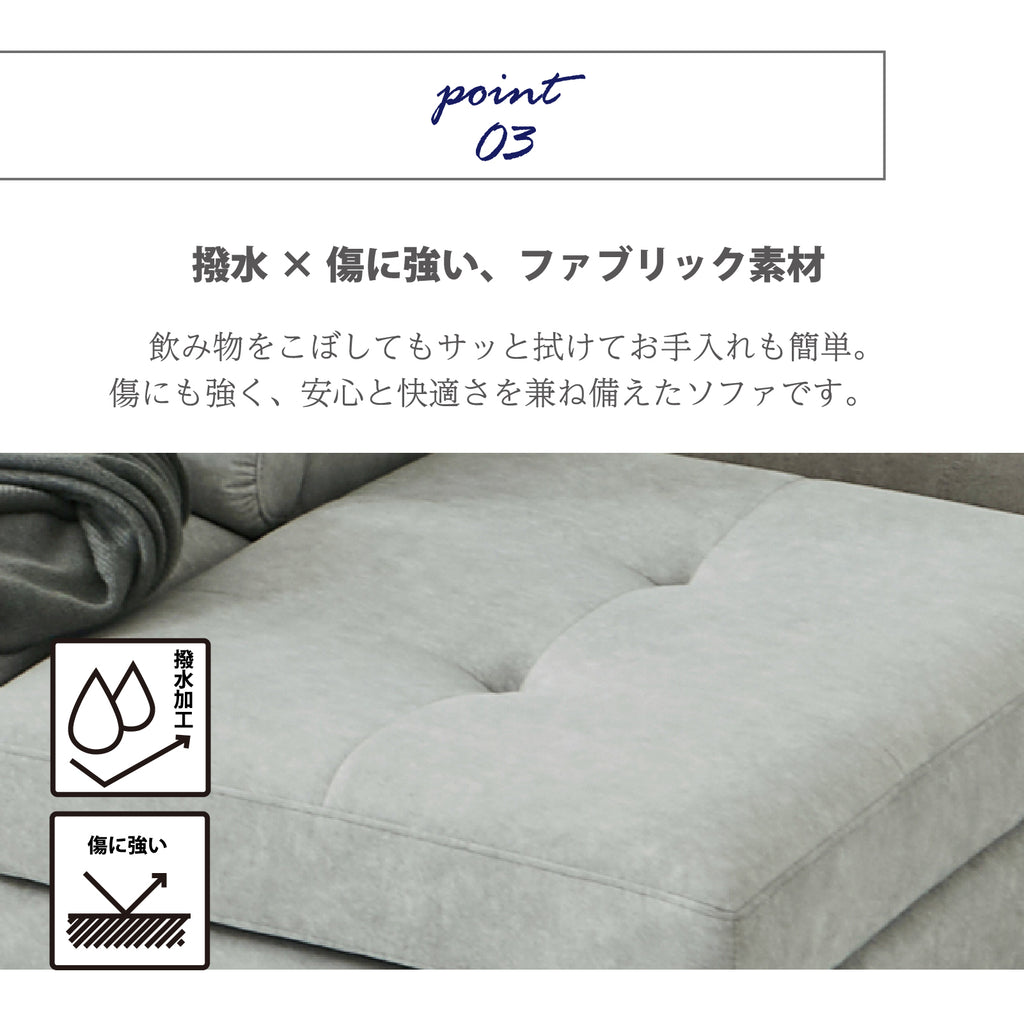 張地:ファブリック(キズに強い・撥水) 中材:Sバネ、ウレタンフォーム、シリコンフィル、ウェービングベルト |