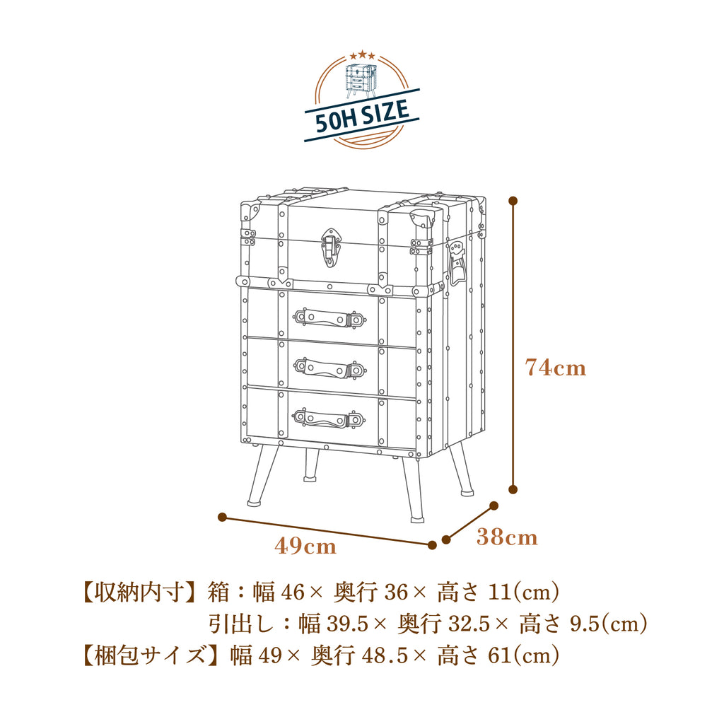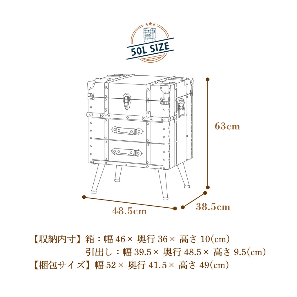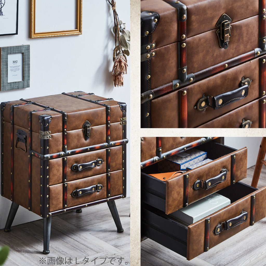 ・ヴィンテージ風の収納BOXで置くだけでおしゃれに。 ・子供部屋にシリーズで置くと、お片付けがワクワクタイムに早変わり! ・上開きと引き出し、2種類の収納を備えた収納ボックス ・フタを閉めて「パチン」と留めるトランク錠で開け閉め簡単。 ・ベルト型の取っ手でつかみやすい仕様です。 ・ハイタイプとロータイプの2種類からお選びいただけます。 ・脚部にもヴィンテージ風の風合いをプラス。 |