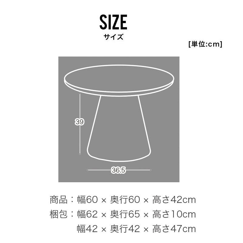 梱包:(天板}約 幅62×奥行65×高さ10cm (脚)約 幅42×奥行42×高さ47cm |