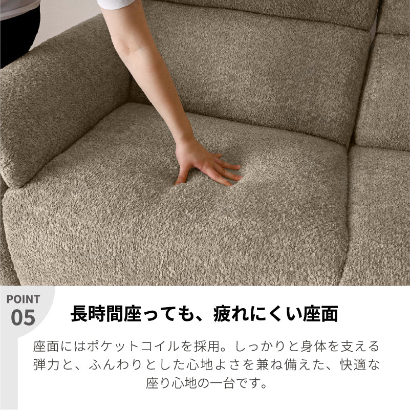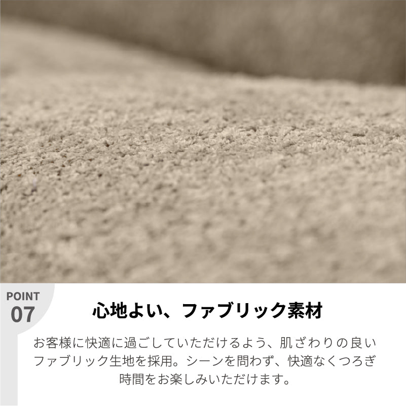 張地:ファブリック クッション材:ポケットコイル、Sバネ、ウレタンフォーム、 ウェービングベルト,シリコンフィル、ポケットコイル(座面) |