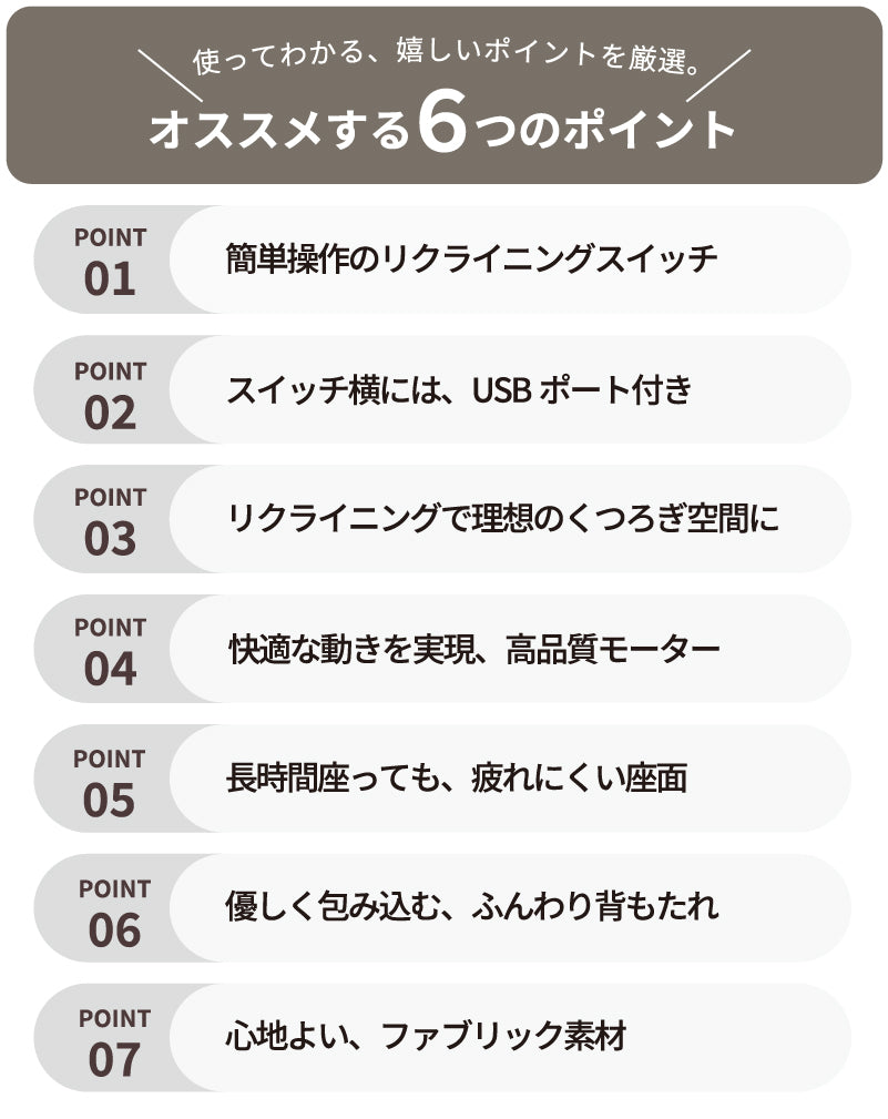 ※お使いのUSBケーブルによっては給電機能が使用できない場合がございます。 ケーブルの適合については回答できかねますのでご了承ください。 ※充電機器データの毀損・消失について 何らかの原因で使用機器の故障・データの毀損・消失が起こった場合、いかなる理由であっても弊社は一切その責任を負いかねます。 ※搬入経路をお確かめの上ご注文ください。 ※ソファから立ち上がる際はリクライニングを元に戻してから降りてください。 ※カバーの取り外しはできません。 ※お客様都合によるご交換・ご返品はできませんので予めご了承下さい。 ※お使いのモニターの発色具合によって、実際のものと色が異なる場合がございます。 |