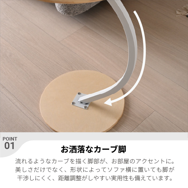 ・おしゃれなカーブ脚 流れるようなカーブを描く脚部が、お部屋に洗練された北欧風のデザイン性をプラスします。 シンプルながらも個性的なデザインで、インテリアのアクセントになります。