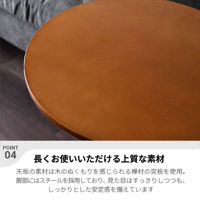 ・長く使える上質な素材 天板は木のぬくもりを感じる樺材突板で、脚部は強度のあるスチールを採用し、安定感があります。