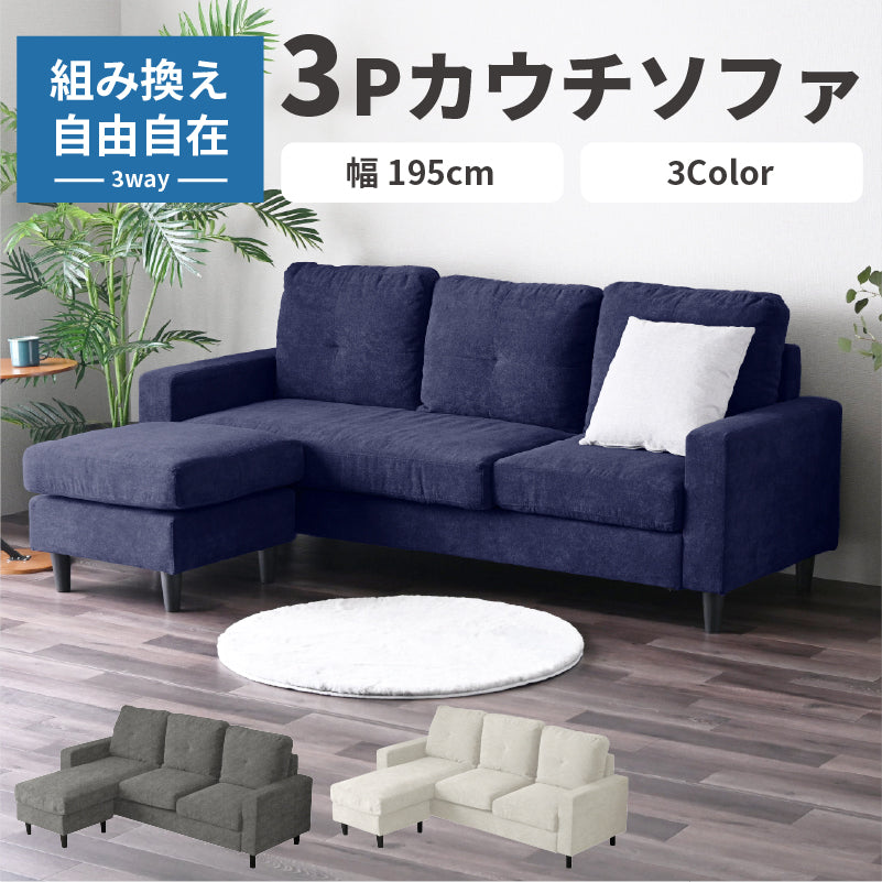 「置きたい場所」に合わせて、カタチが変わる。 コンパクトなのにゆったり座れる、レイアウト自由自在の3人掛けカウチソファ