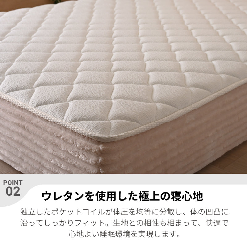 ・極上の寝心地 独立したポケットコイルが体圧を分散し、体の凹凸に合わせてしっかりとフィット 。