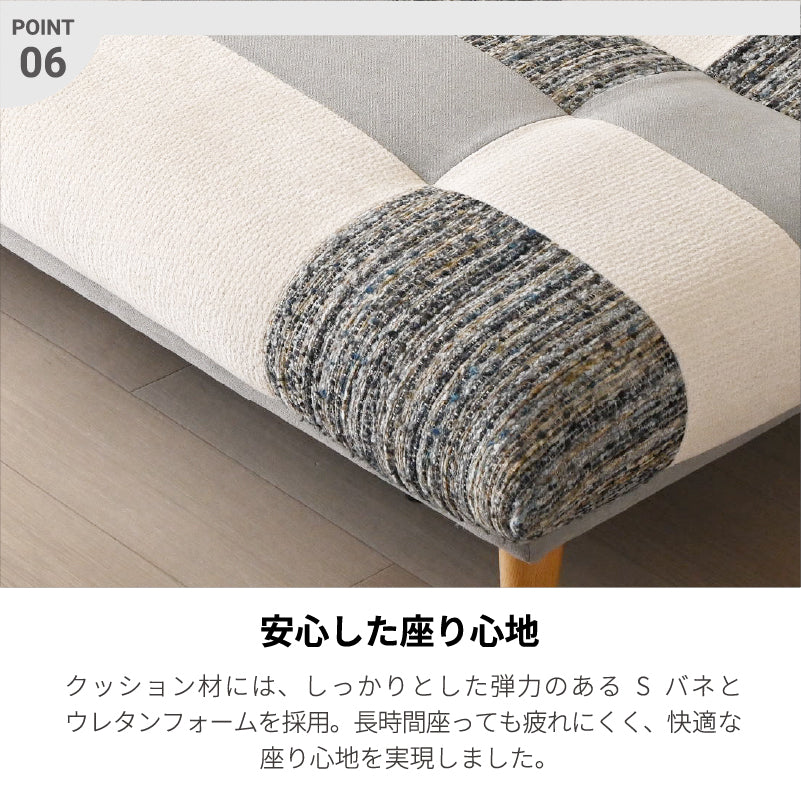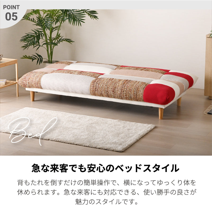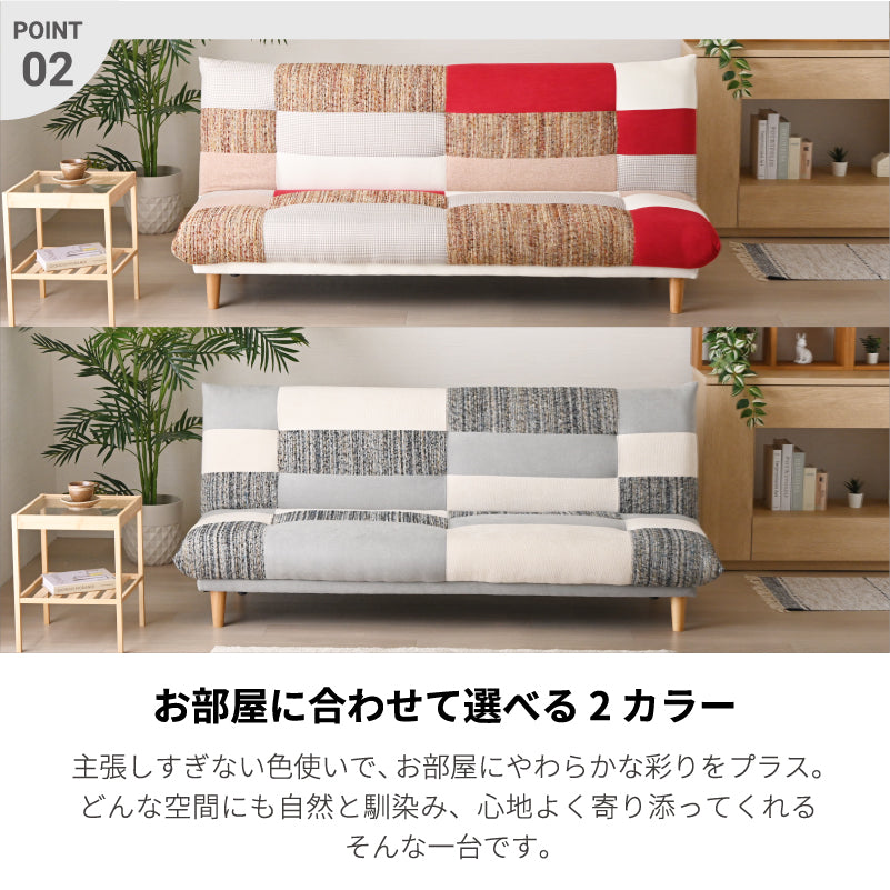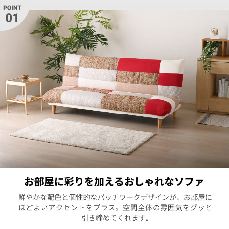 鮮やかな配色と個性的なパッチワークデザインが、お部屋にほどよいアクセントをプラス。