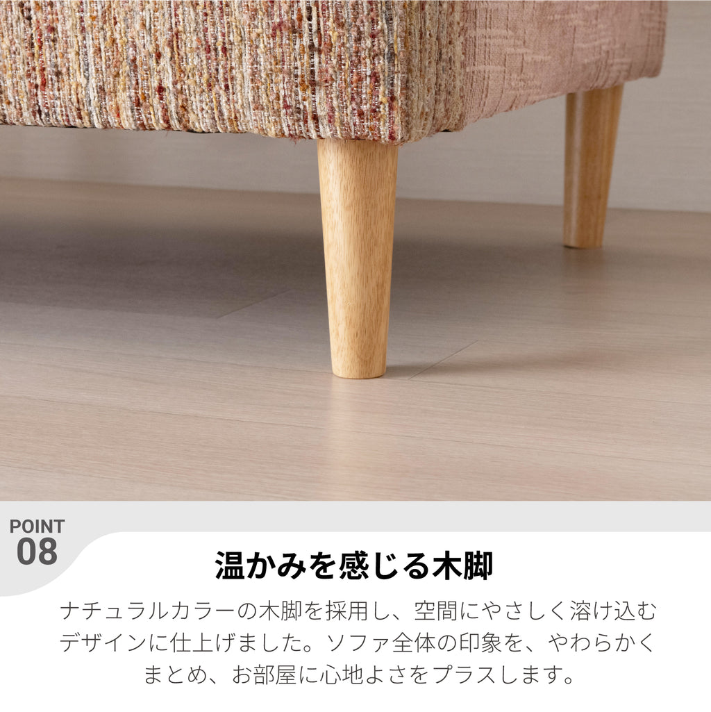 ・温かみを感じる木脚 ナチュラルカラーの木脚を採用し、空間にやさしく溶け込むデザインに仕上げました。
