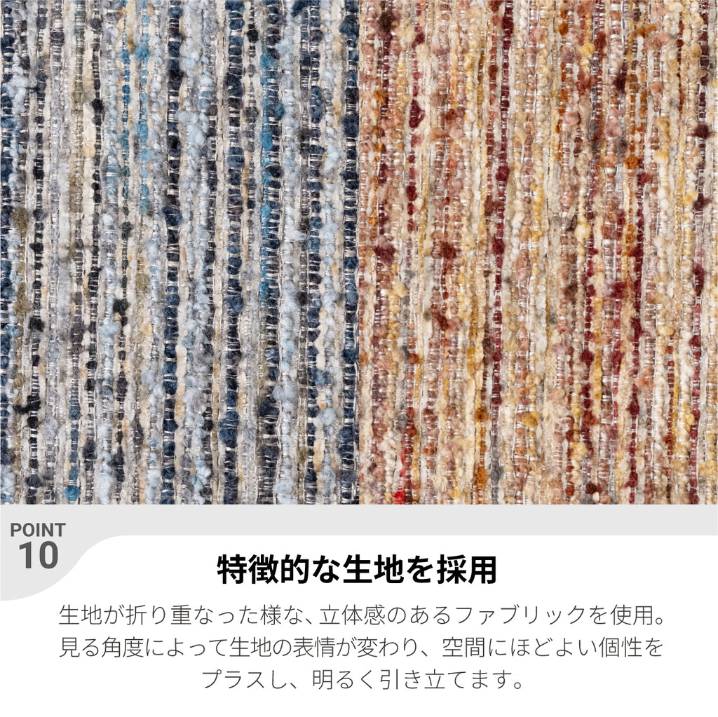 ・特徴的な生地を採用 生地が折り重なったような立体感のあるファブリックを使用。 |